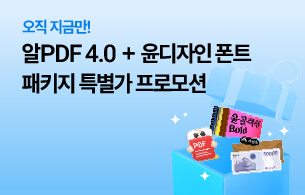 알PDF 4.0과 윤디자인 정품 폰트를 하나의 패키지로 만나보세요. 문서 편집부터 디자인, 정품 SW 환경 구축까지 한 번에 해결할 수 있습니다. 실무에 꼭 필요한 구성에 상품권 혜택까지 더해진 특별 기회를 놓치지 마세요. 자세히 보기 >>
